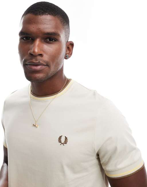 Fred Perry - T-shirt beige con bordi a contrasto