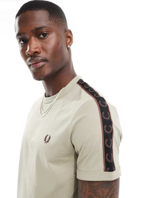 Fred Perry - T-shirt beige con fettucce a contrasto