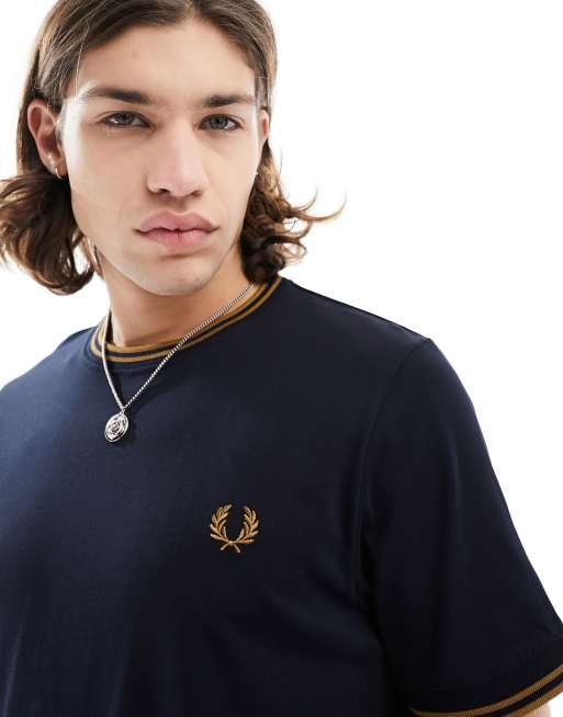 Fred Perry - T-shirt blu navy con doppia riga a contrasto su collo e maniche