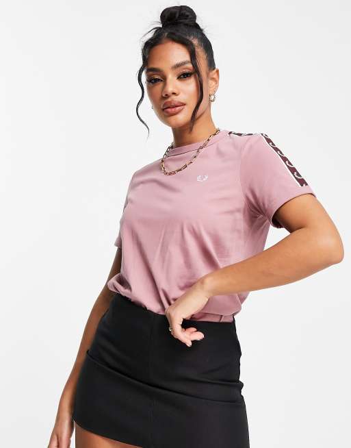 Fred Perry - T-shirt con bordi a contrasto e fettucce rosa polvere