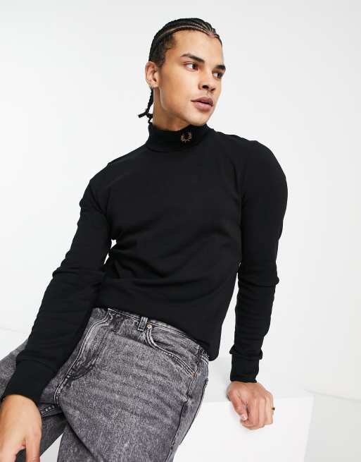 Fred Perry - Top in jersey nero con collo alto