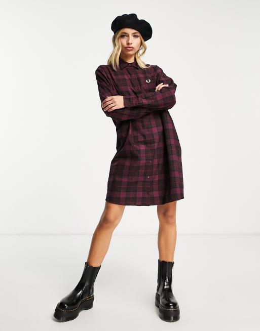 Fred Perry - Vestito camicia midi rosso a quadri scozzesi