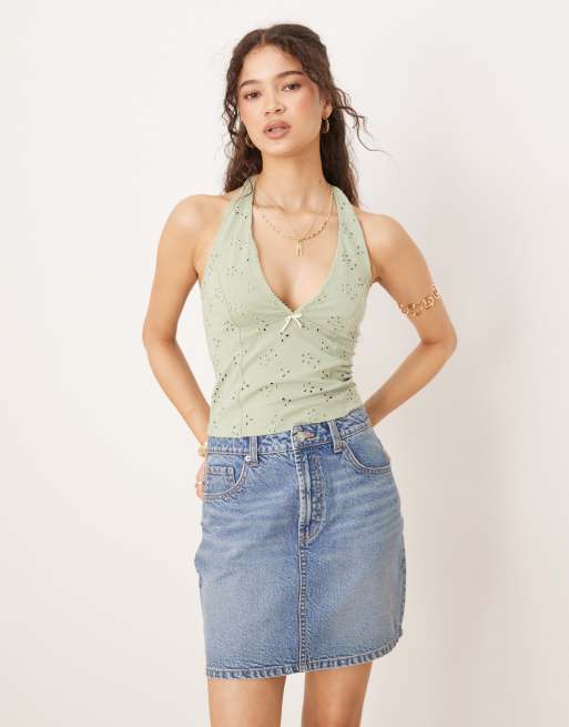 Free People - Full Bloom - Top allacciato al collo verde traforato