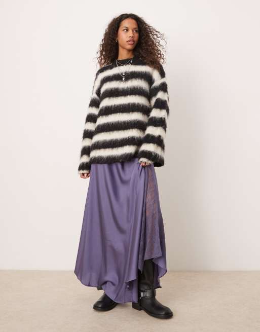 Free People - Gonna al polpaccio blu airone in raso con inserto in pizzo