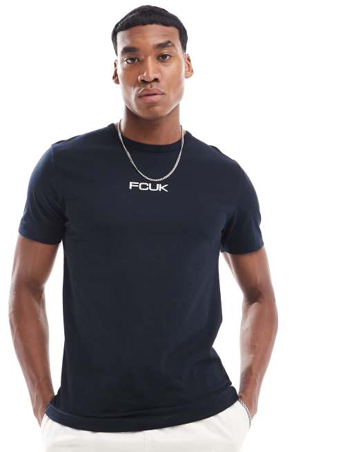 French Connection - T-shirt girocollo blu navy con logo "FCUK" sul petto