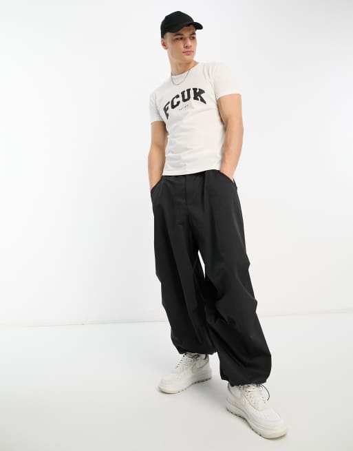 FCUK - T-shirt bianca e nera con logo stile college