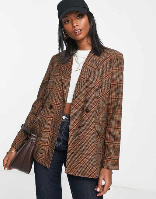 French Connection - Blazer comodo marrone a quadri in coordinato