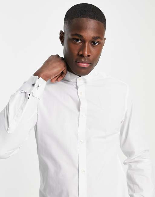 French Connection - Camicia slim fit con colletto diplomatico bianca