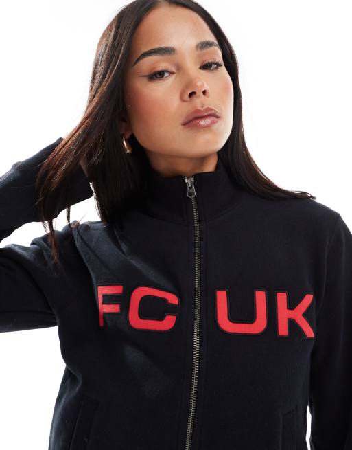 French Connection - FCUK - Felpa nera in jersey con scritta e zip