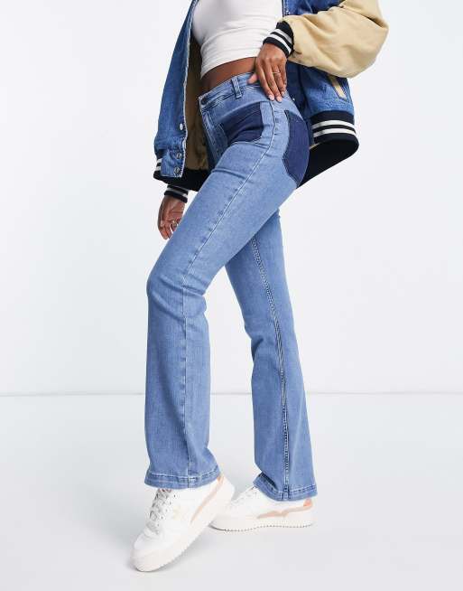French Connection - Rony - Jeans a zampa stile anni '70 color block in due tonalità