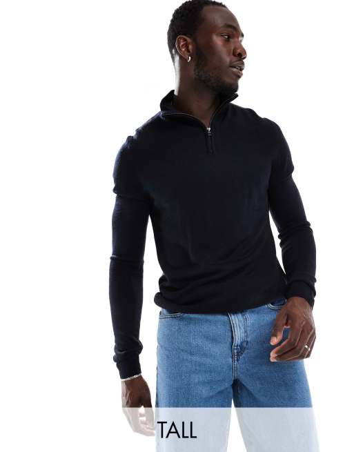 French Connection Tall - Maglione morbido blu navy con zip corta