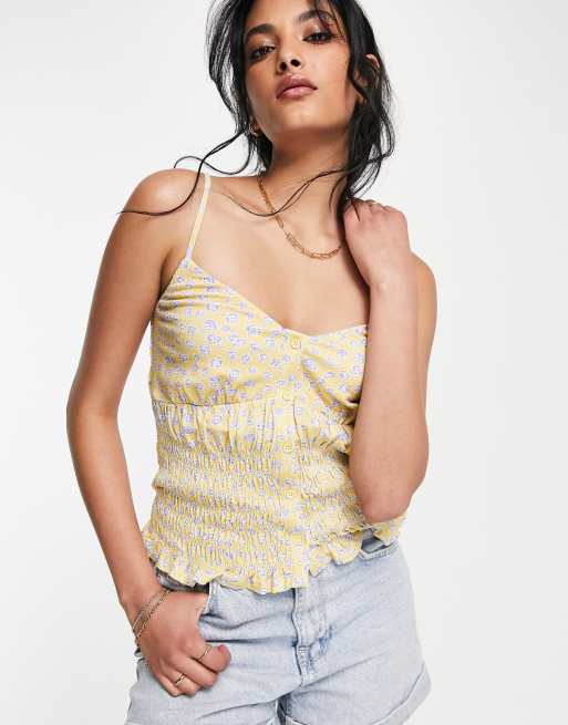 French Connection - Top grembiule con spalline sottili e stampa a fiorellini