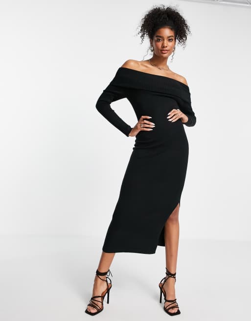 French Connection - Vestito lungo nero a spalle scoperte