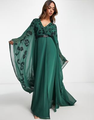Frock and Frill - Vestito lungo verde con mantella e scollo profondo