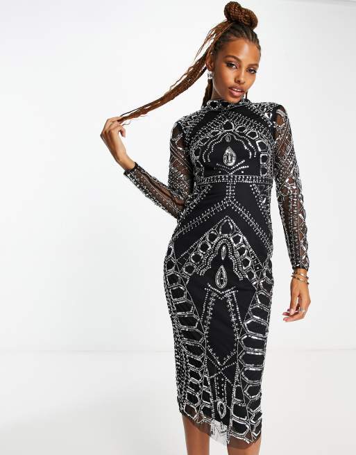 Frock and Frill - Vestito midi a tubino nero con decorazioni