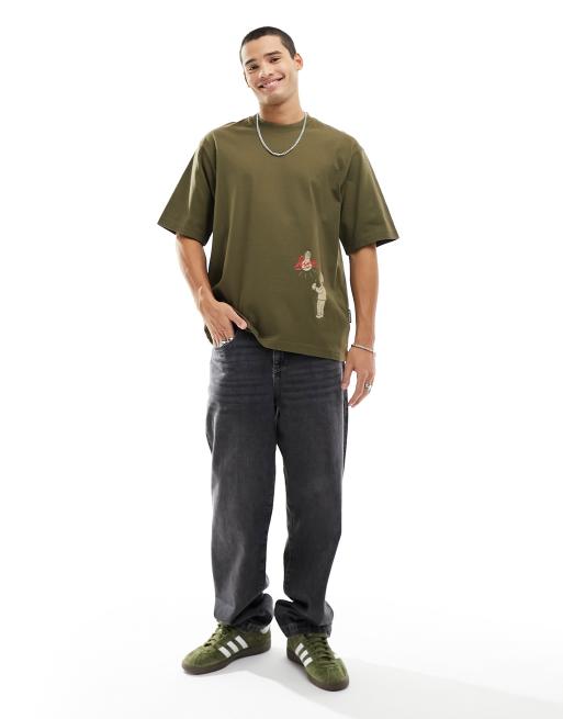 G-Star - T-shirt verde kaki con stampa vistosa di lampadina