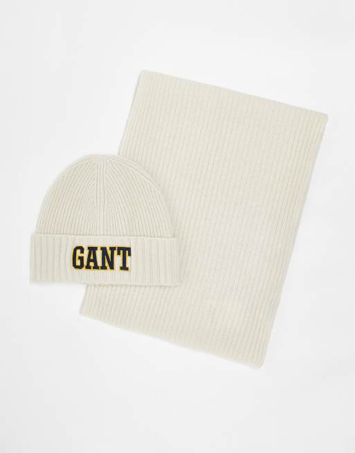 GANT - 1949 - Set regalo in maglia crema con berretto con logo e sciarpa