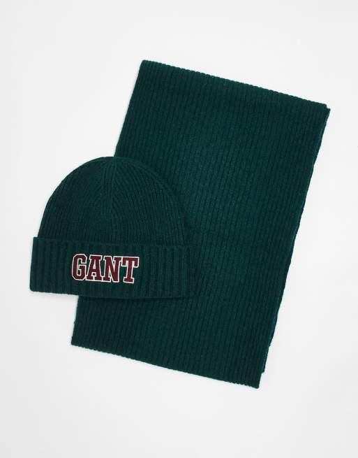 GANT - 1949 - Set regalo in maglia verde con berretto con logo e sciarpa