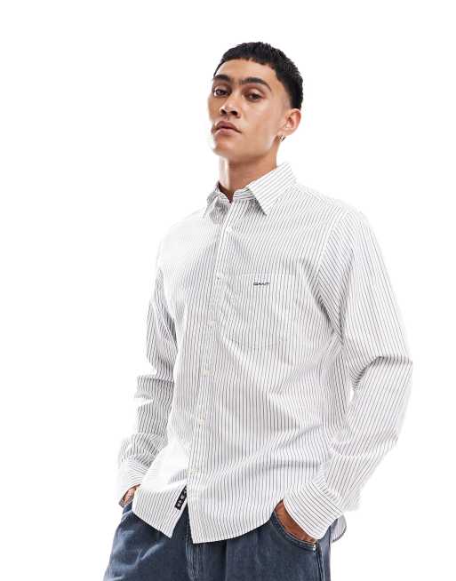 GANT - 75th Anniversary Capsule - Camicia a maniche lunghe bianca a righe in popeline con logo