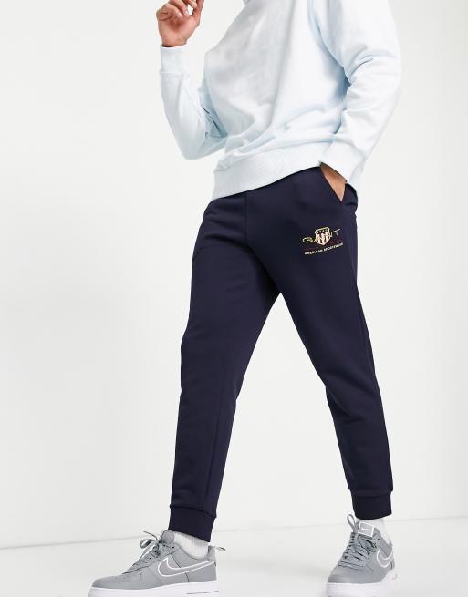 Gant - Archive - Joggers con stemma con logo ricamato e fondo elasticizzato blu navy notte