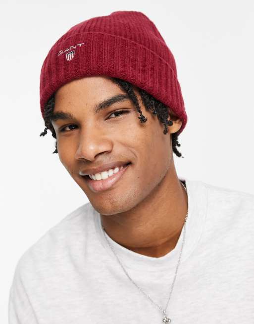 Gant - Berretto foderato in lana rosso bordeaux con logo