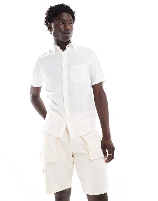 GANT - Camicia a maniche corte bianca testurizzata in cotone e lino