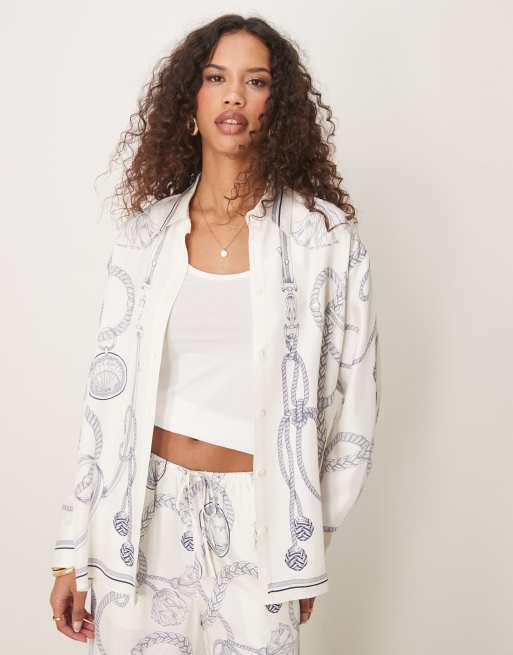 GANT - Camicia bianco sporco con stampa di catene in coordinato