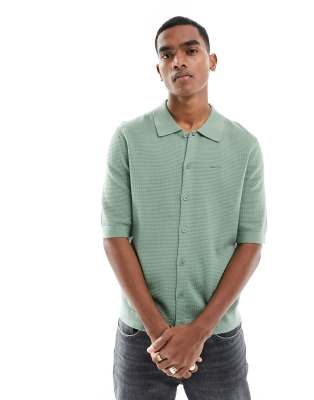 GANT - Camicia stile polo lavorata in cotone testurizzato verde chiaro con bottoni