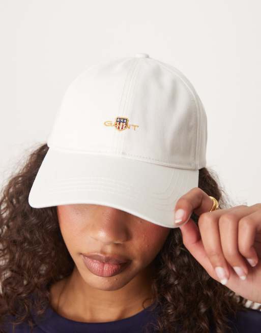 GANT - Cappello con visiera in twill di cotone bianco con logo a scudo