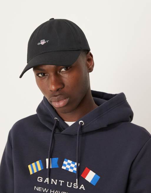 GANT - Cappello con visiera in twill di cotone nero con logo a scudo