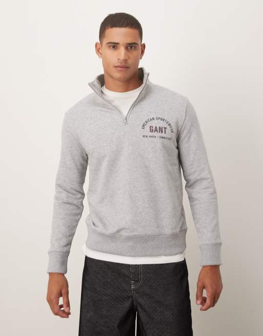 GANT - Felpa grigia con zip corta e logo stile college