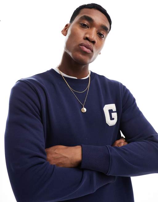 GANT - Felpa stile college color blu navy con logo