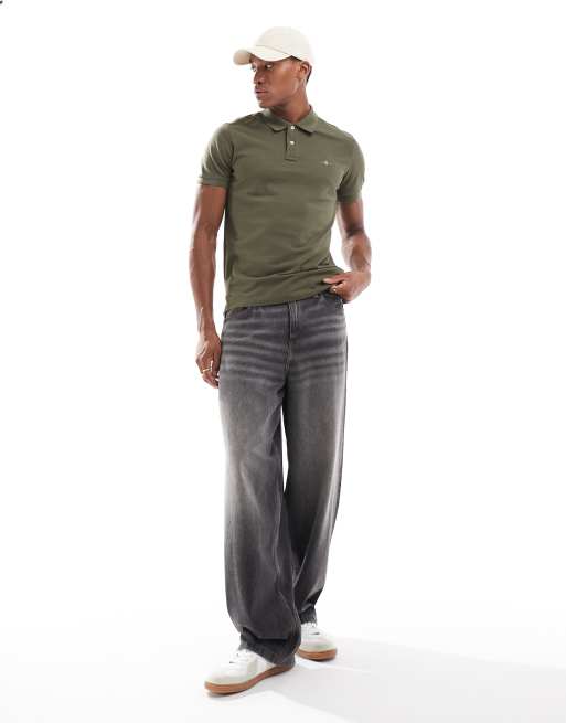 GANT - Polo piqué vestibilità classica kaki con logo dello scudo