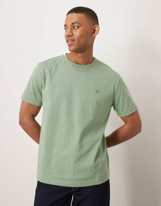 GANT - T-shirt color verde chiaro con logo dello scudo