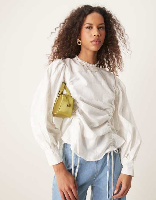 Ghospell - Top bianco a maniche lunghe con coulisse