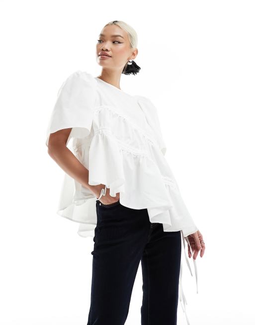 Ghospell - Top bianco asimmetrico arricciato