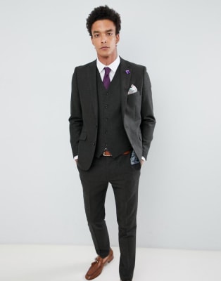 Gianni Feraud - Abito slim in misto lana Donegal verde