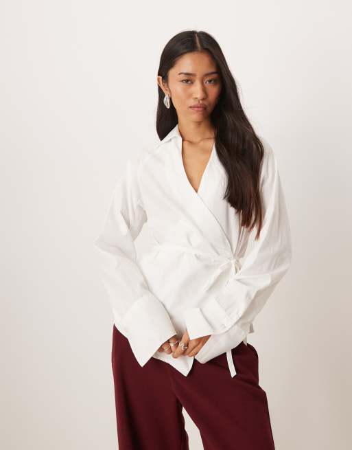 Gina Tricot - Blusa a portafoglio in puro cotone bianca