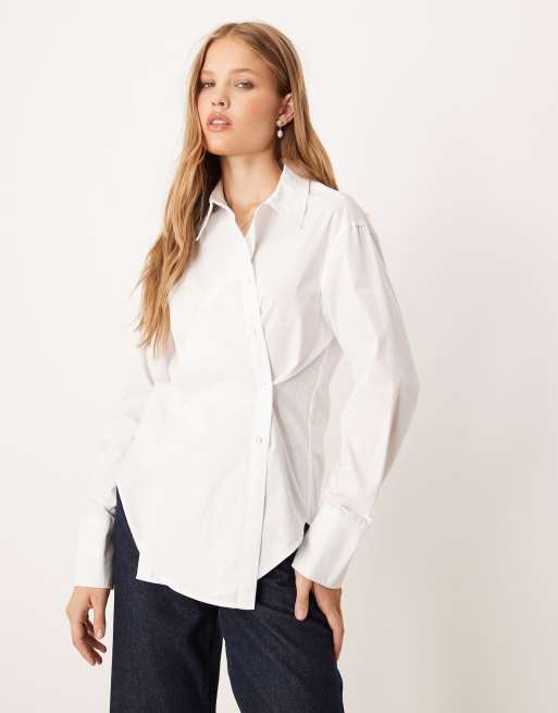 Gina Tricot - Camicia a maniche lunghe in popeline bianca asimmetrica