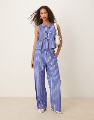 Gina Tricot - Coordinato blu a righe con pantaloni e top senza maniche