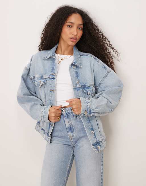 Gina Tricot - Giacca boyfriend oversize in denim blu lavaggio chiaro