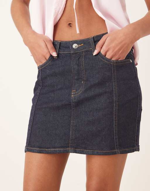 Gina Tricot - Minigonna in denim blu indaco lavaggio scuro