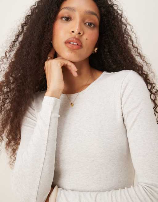 Gina Tricot - Mix & Match - Top a maniche lunghe in jersey a coste con scollo rotondo