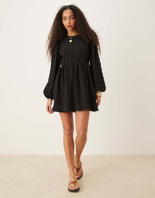 Gina Tricot - Vestito corto testurizzato nero aperto sul retro con maniche voluminose