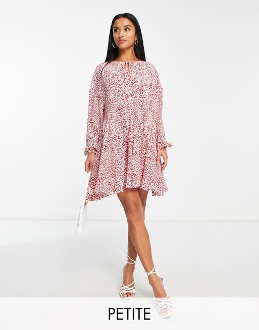 Glamorous Petite - Vestito grembiule corto svasato allacciato al collo rosso leopardato