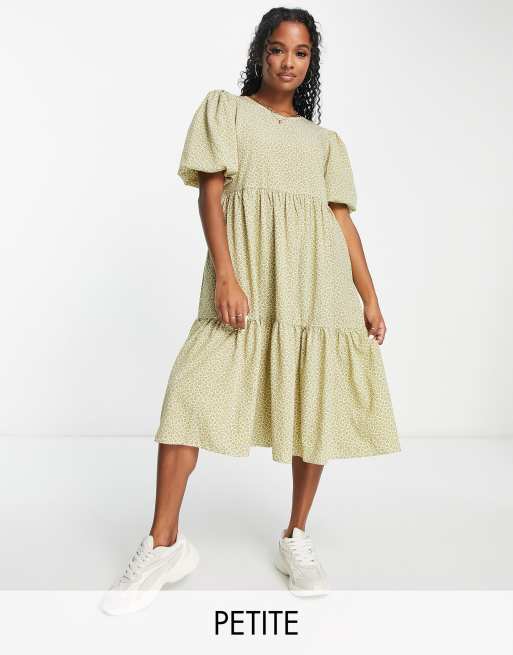 Glamorous Petite - Vestito grembiule midi a balza allacciato sul retro verde oliva a fiori