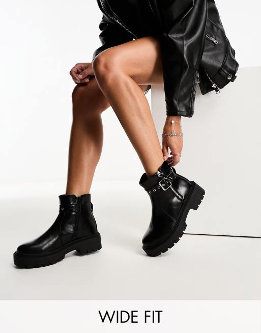 Glamorous Wide Fit - Stivaletti Chelsea neri con pianta larga, fibbia e suola spessa