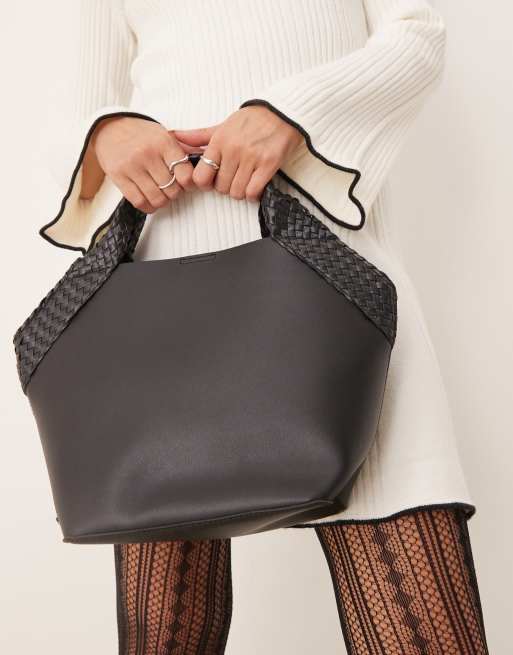 Glamorous - Borsa a secchiello nera con manico intrecciato