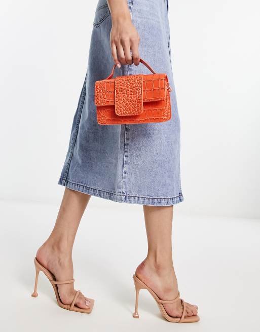 Glamorous - Borsa a tracolla in pelle sintetica effetto coccodrillo arancione bruciato