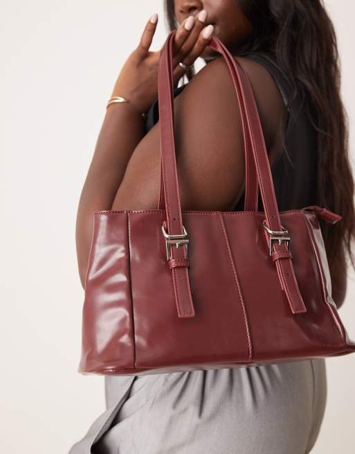 Glamorous - Borsa shopping da spalla bordeaux verniciato